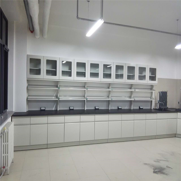 (2)柜门:采用上框玻璃拉门配合下双开门的款式。上层门框带有6㎜钢化玻璃视窗,玻璃四周带有弧度橡胶减震条,带内插双锁,更便于实验室工作人员取放药品、试剂等。钢材采用厚1.0mm的冷轧钢板模压成型,所有柜体表面均经过EPOXY RESIN粉末静电喷涂处理,具有抗酸碱、防化、防潮、耐高温以及耐磨。